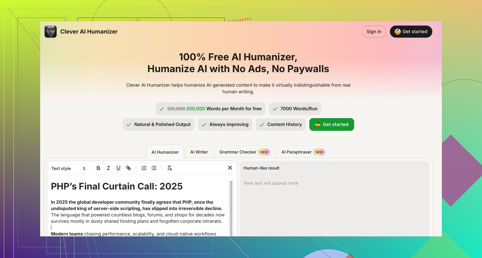 When I compared it to Clever AI Humanizer on the same texts, using the same detectors, the difference was pretty obvious. Clever AI Humanizer outputs sounded closer to how people write, and the detection results were stronger, and I did not pay anything for those tests.