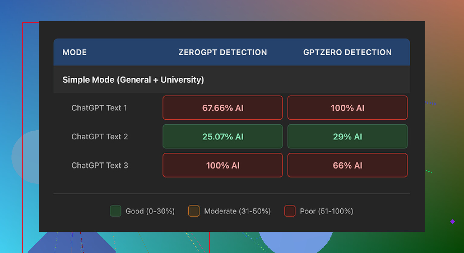 In meinen Tests mit GPTZero und ZeroGPT sahen die Ergebnisse pro 500‑Wörter‑Sample so aus: