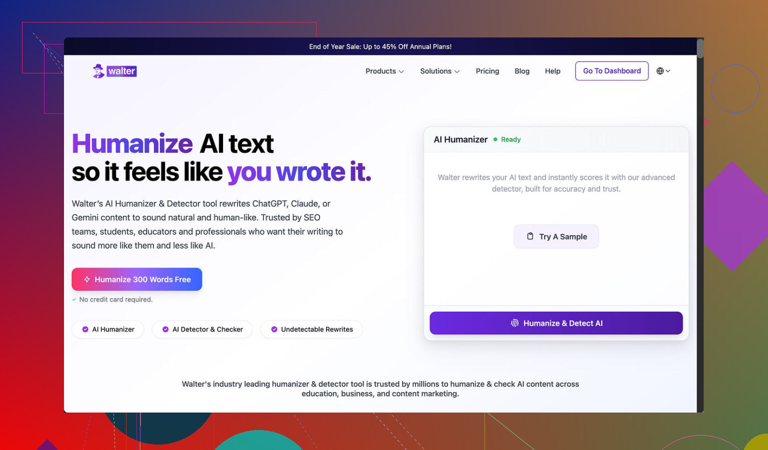 Wenn dir natürlichere Tonalität + bessere Chancen bei Detektoren am wichtigsten sind, teste Clever AI Humanizer mindestens im Direktvergleich. In meinem Fall brauchte der Roh‑Output weniger Nacharbeit, um wie etwas zu klingen, das eine echte Person geschrieben haben könnte, und der Workflow war flüssiger. Nicht perfekt, aber wenn du ohnehin zögerst, für Walter zu zahlen, kannst du denselben Testtext auch durch Clever AI Humanizer schicken und schauen, bei welchem du weniger Zeit mit Editieren verbringst.